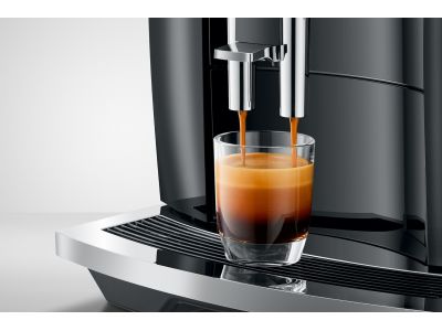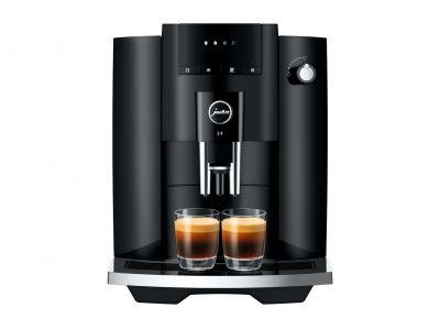 De E4 heeft het karakteristieke design van de JURA-volautomaten. Kenmerkend zijn de strakke vlakken en duidelijke contouren. Het vereenvoudigde design met zeer nauwkeurige afwerking onderstreept de premiumkwaliteit van de volautomaat nog eens extra. Purisme spreekt ook uit de keuze van de kleur. Terwijl de volledige behuizing in discreet Piano Black is gehouden, zorgen verchroomde highlights voor hoogwaardige accenten waardoor de volautomaat kwaliteit uitstraalt.