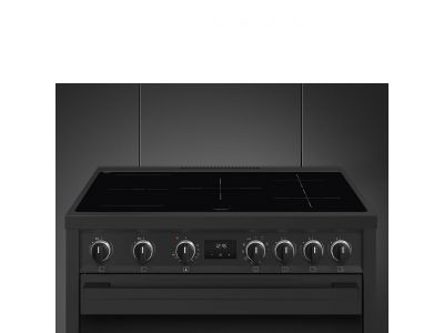 Fornuis 90 x 60 x 90 - 5 inductiezones waarvan 1 multizone - 1 oven - energieklasse A - vapor clean reiniging - antraciet