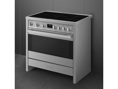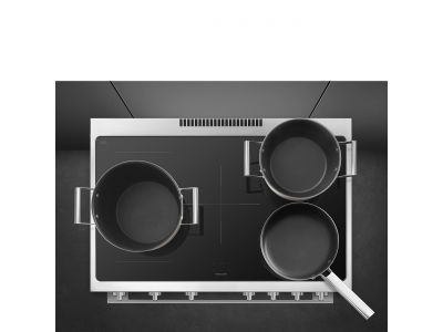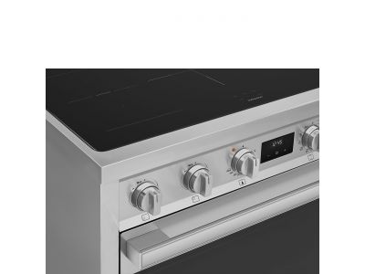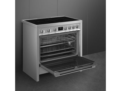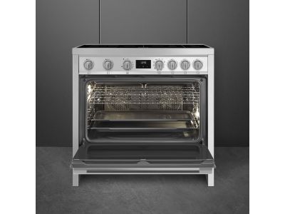 Fornuis 90 x 60 x 90 - 5 inductiezones waarvan 1 multizone - 1 oven - energieklasse A - vapor clean reiniging - inox