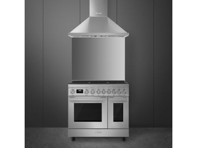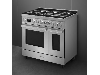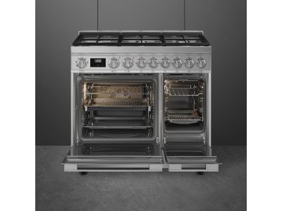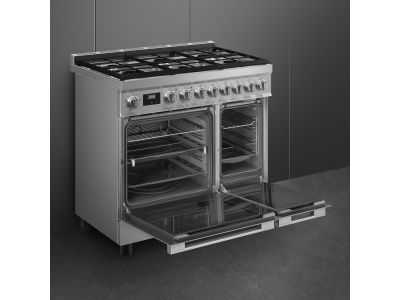 Fornuis 90 x 60 x 90 - 6 gasbranders - 2 ovens multifunctie - energieklasse A - vapor clean reiniging - inox