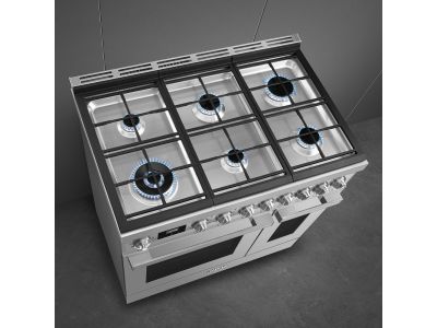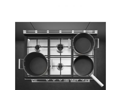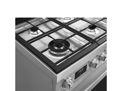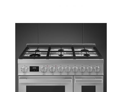 The gas hob features heavy-duty cast-iron pan stands and six burners, one of which is a powerful 4.2KW ultra-rapid burner, perfect for wok frying. Each burner has its own independent control ensuring maximum ease of use and professional results.
