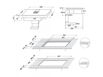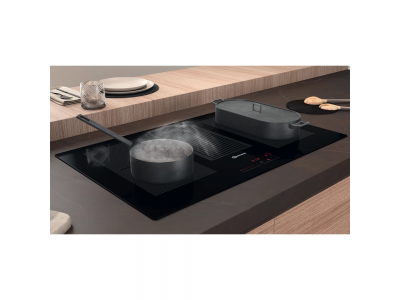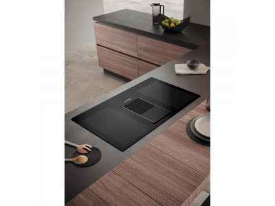 Inductiekookplaat met geïntegreerde afzuiging83 cm4 zones (2 bridge zones)600 m³/hMax 71dBAinstallatiekit apart aan te schaffentiptoetsbediening met sliderzonder kader
