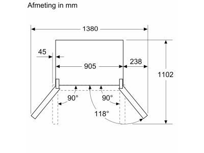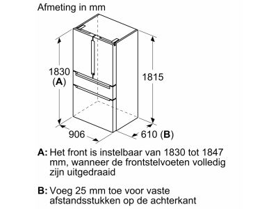 Type koelkast : | Driedeurs koelkast (vriesvak onderaan) |