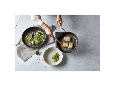 Zorgeloos en met succes alle mogelijke delicate ingrediënten bakken: vis, zeevruchten, eieren, tofu, zwezeriken, gepaneerde producten ... Reken op de Alu Industry 3 bakpan van 20 cm met haar handige Duraslide® antikleeflaag. De bijzonder efficiënte Duraslide® antikleeflaag is de topper binnen de traditionele antikleeflagen. Deze PTFE-coating telt drie lagen, zodat je kookgerei extra lang als nieuw blijft. Gebruik enkel accessoires in silicone of hout, om beschadiging te voorkomen. Dankzij de unieke Radiant® bodem is en blijft je pan extra stabiel en in optimaal contact met eender welke kookplaat, ook inductie. De warmte wordt egaal verdeeld. Overschakelen naar een andere fornuisstand? Deze pan reageert supersnel. Leg je ze vol met koude ingrediënten, zelfs recht uit de koelkast, dan is ze even snel weer op de juiste temperatuur. Met Alu Industry 3 haal je doordacht en vlot hanteerbaar design in huis, met een onklopbare prijs-kwaliteitverhouding. Het matzwarte gesmede aluminium contrasteert prachtig met de ruwere gezandstraalde roestvrijstalen greep. Ben je een liefhebber van grillen in de oven of van flamberen? Dan heb je ook een pan zonder antikleeflaag nodig.