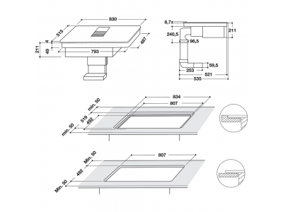 Inductiekookplaat met geïntegreerde afzuiging, 83 cm, 4 zones, 600 m³/h, Max 71dB, A, installatiekit apart aan te schaffen, tiptoetsbediening met slider, zonder kader