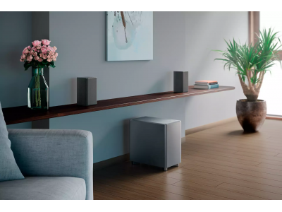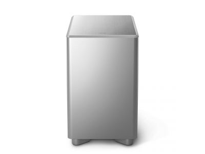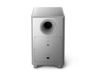 Dankzij het slanke ontwerp is deze subwoofer perfect voor de meeste leefruimten. Het slanke ontwerp met aluminium bovenkant ziet er in elke omgeving geweldig uit. En als u niet wilt dat de subwoofer zichtbaar is, kunt u deze eenvoudig verbergen.