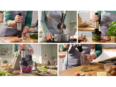 De ErgoMaster Serie 6 staafmixers maken je gerechten nog lekkerder: soepen worden lichter, spreads gladder. De krachtige motor, de speciaal gevormde bel en de 4 scherpe messen zorgen voor een perfecte textuur. Bereid je voor op een nieuw niveau van kookbeleving dankzij de grote snelheidsregeling, de stille werking en de ergonomische handgreep. De kracht van de luchtgekoelde, krachtige motor wordt zonder slijtage overgedragen op de messen. Tot slot kunt u gerust zijn, want het bevat alle knowhow van Bosch en heeft een onbreekbaar keramisch drijfwerk. Dit is een gepatenteerde wereldinnovatie.