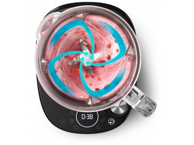 Snelkeuzeprogramma's op het digitale display worden ingesteld met de tijd- en snelheidsinstelling, zodat u uw favoriete recepten binnen handbereik hebt. U kunt kiezen uit: smoothie, notenpasta, dessert, soep, saus en functies voor het vermalen van ijs en voor reiniging.