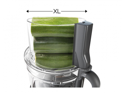 De XL invoerbuis betekent dat u ingrediënten zoals courgette en zoete aardappel in de lengte kunt snijden voor gelijkmatige reepjes. De extra breedte betekent ook dat u minder voorbereidingen hoeft te treffen voor uien, paprika's en fruit om in de buis te passen. Met de slimme 3-in-1-schuiver kunt u de breedte van uw invoerbuis aanpassen aan uw ingrediënten en de gewenste resultaten.