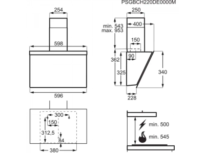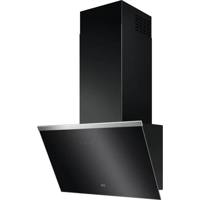 Verticale dampkap, 60 cm, zwart met inox trim, 710 m³/u, H²H, "touch on glass" bediening