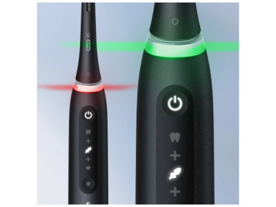 De iO 5 elektrische tandenborstel is voorzien van de beste technologie van Oral-B en combineert een door tandartsen geïnspireerde ronde borstelkop met micro-vibrerende borstelharen voor een professioneel reinigend gevoel thuis. De slimme poetsdruksensor helpt voorkomen dat u te hard of te zacht poetst om uw tandvlees beter te beschermen. Gum Guard waarschuwt u als u te veel druk op uw tanden uitoefent. Vervang uw Oral-B iO opzetborstel elke 3 maanden voor de beste resultaten.