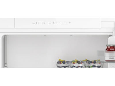 Met de Super-koelen knop kunt u de temperatuur in de koelkast snel verlagen tot +2 °C. Dit voorkomt dat etenswaren die al zijn afgekoeld, weer warm worden als u niet gekoeld eten in de koelkast zet.
