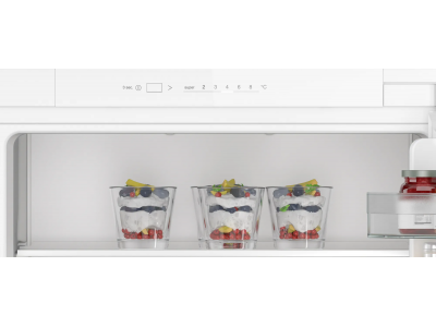 Met de Super-koelen knop kunt u de temperatuur in de koelkast snel verlagen tot +2 °C. Dit voorkomt dat etenswaren die al zijn afgekoeld, weer warm worden als u niet gekoeld eten in de koelkast zet.