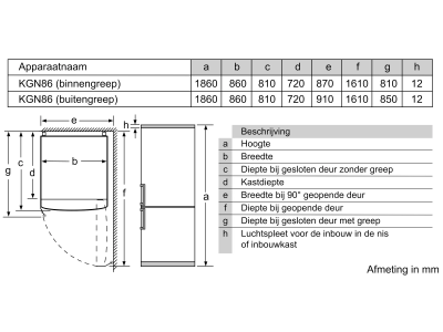 Totale netto inhoud koelkast : | 479 Liter |