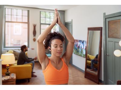 Drukke sportschool? Lawaaierige trein? Meerdere microfoons en geavanceerde audioverwerking filteren externe geluiden uit. Adaptieve ruisonderdrukking detecteert automatisch wat je aan het doen bent en past het niveau van het omgevingsgeluid daarop aan, zodat u altijd uw muziek hoort.