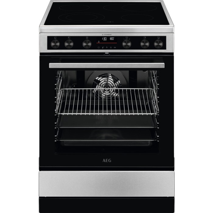 Fornuis met vitrokeramische kookplaat en multifunctionele heteluchtoven, pyrolysefunctie, SteamBake, inox