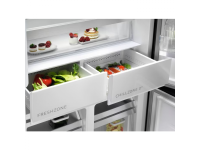 Bescherm de textuur van je gevoelige ingrediënten met ChillZone 0°. Met een temperatuur van 0°C en lager behoudt het afgesloten compartiment een koudere temperatuur, die ideaal is voor diepvriesvoedsel, vlees, en vis. Voor een betere bescherming van de textuur van levensmiddelen.