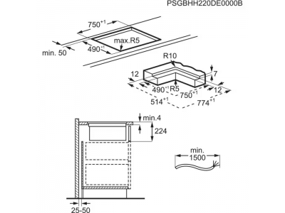 80cm, ComboLite, recirculatiemodus, geschikt voor inbouw en vlakbouw, brugfunctie, afgeronde rand (geschikt voor recirculatie, niet voor evacuatie)