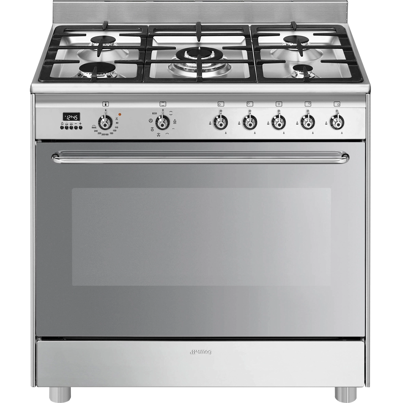 Fornuis 90 x 60 x 90 - 5 branders gas - oven multifunctie - energieklasse A - inox