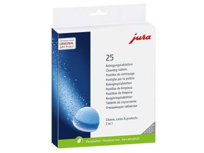 De 3 in 1 reinigingstablet zorgt – in combinatie met het geïntegreerde, elektronisch gestuurde reinigingsprogramma – voor een grondige verwijdering van de koffievetten tussen de zetgroep en de koffie-uitloop. De tablet reinigt niet alleen, maar zorgt ook voor een beschermlaagje in alle leidingen waardoor het koffievet geruime tijd vertraagd wordt afgezet. Bovendien bieden zogeheten complexvormers een duurzame bescherming tegen mineraalafzettingen.