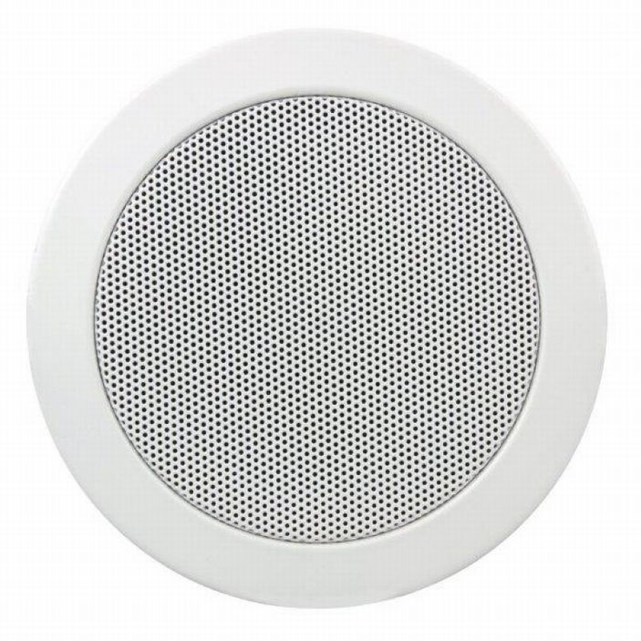Inbouwluidspreker 100V, slechts een beetje groter dan een halogeenspot. Voorzien van een volledig metalen frame. Witte uitvoering. Ook verkrijgbaar in zwart of zilverkleurig.