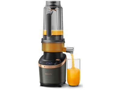 De nieuwe Philips Flip & Juice-blender is onze eerste high-speed blender met sapmodule. Dankzij het revolutionaire ontwerp van de kan en het geïntegreerde filter krijgt u uw drankje met een structuur die is aangepast aan de voorkeuren van uw gezin. Van perfect zijdezachte smoothies tot heldere of troebele sappen, onze meest geavanceerde blender biedt de grootste variatie. Het combineert blenden en sap persen in één oplossing en bespaart ruimte in uw keuken.