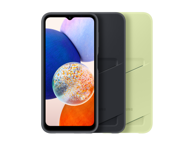 De slanke Galaxy A14 5G Card Slot Case is beschikbaar in twee schitterende kleuren die je telefoon net weer wat extra's geven. Je kunt kiezen uit Black of Lime.