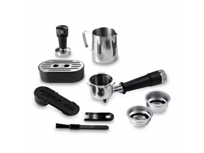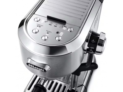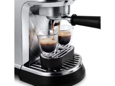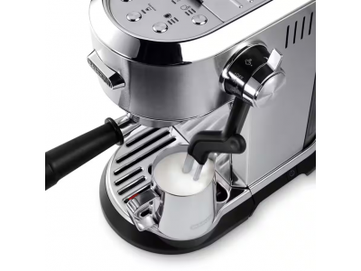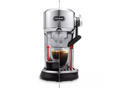 Dedica Maestro Plus, metal finishing. Autosteamer System, single wall filter+stainless steel portafilter, 3 coffee temperature settings. Recipe: Espresso. 3 milk temperature settings + 3 milk texture settings. Professional tamper and espresso cup support included (Krëfe online, VDB, MM, Coolblue, Elektron, Lanckriet, roasters)