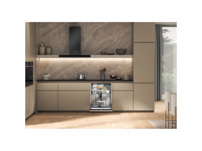 Inbouw vaatwasser 60cm, Maxi Space, NEL: B, 9.5 L, 38 dB(A), 8p, 14 couverts, 6th Sense, uitgestelde start, Powerclean Pro, SpaceClean rack, Time on Floor, glijscharnieren, Aquastop, NaturalDry, zwart glas paneel