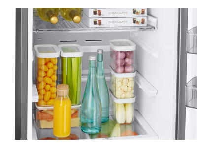 Gebruik uw koelkastruimte efficiënt met het multifunctionele flessenrek. Dankzij de platte vorm is het Samsung koelkastflessenrek zeer veelzijdig inzetbaar. Naast flessen kun je er ook andere producten in bewaren, zoals een pizzadoos of eieren. Zo vermijd je de verspilling van ruimte van het gewone wijnrek en maak je efficiënter gebruik van de beschikbare opslagruimte.