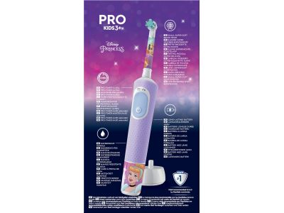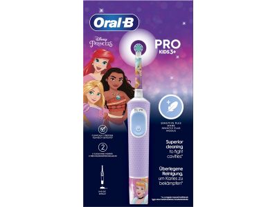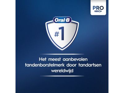 De Oral-B Pro Kids elektrische tandenborstel, aanbevolen door tandartsen voor kinderen vanaf 3 jaar, biedt een milde, effectieve reiniging. Met 2 borstelstanden, waaronder een unieke, kindvriendelijke gevoelige stand reinigt deze borstel de tanden van kinderen voorzichtig. Hij verwijdert meer tandplak dan een gewone manuele tandenborstel. Er zitten 4 themastickers bij om het handvat mooier te maken.