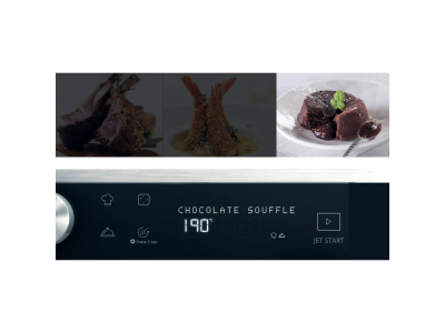 Jet Menu biedt programma’s, speciaal voor diepvriesgerechten, die de bereidingstijd automatisch berekenen op basis van het opgegeven soort voedsel en gewicht.