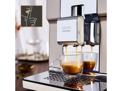 De Intuition Experience + Krups Automatische Koffiemachine is een bonen-tot-kop koffiemachine met twee kopjes voor beginnende barista's! lungo koffie, dubbel, melkdranken, van latte macchiato tot flat white, en extra shot koffie, ideaal voor maximaal 15 koffie per dag.De Krups Koffiezetapparaat is een espressomolen voor 2 kopjes waarmee u thuis kunt genieten van koffie van barkwaliteit.