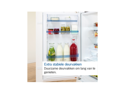 De deurvakken zijn extra hoog en robuust zodat je er een stuk langer van geniet. Doordat de vakken iets hoger zijn, houden ze ook zware flessen een stuk stabieler op hun plek. Zelfs als je de koelkastdeur iets te enthousiast opent.