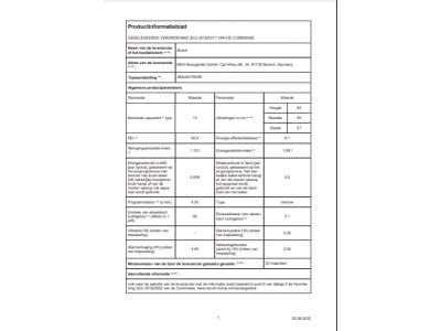 Energieverbruik in eco-programma per 100 cycli : | 84 kWh |