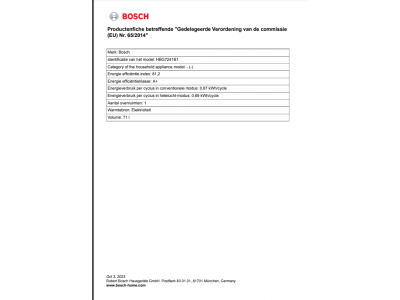Elektrisch verbruik per cyclus (hetelucht) : | 0.69 kWh |
