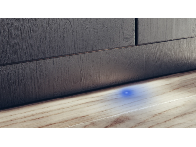 infoLight projecteert een blauw licht op de keukenvloer wanneer het gekozen programma loopt. Zo weet je in één oogopslag of je het programma hebt gestart, de vaatwasser nog bezig is of dat de vaat schoon is en kan worden uitgeruimd.