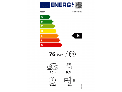 Energieverbruik in eco-programma per 100 cycli : | 76 kWh |