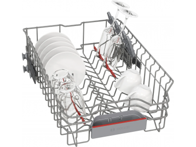 De hoogte van de bovenkorf kan in drie stappen met in totaal 5 cm worden aangepast met het 3-voudige rackmatic-systeem. Zelfs bij volledige belading. Of het nu gaat om pizzaborden of glazen met een lange steel - er wordt flexibel meer ruimte gecreëerd aan de boven- of onderkant voor hoge gerechten.