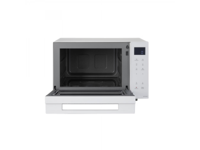 Perfect voor kleinere keukens met weinig ruimte op het aanrecht: de NN-DF37 is uiterst compact van formaat en biedt toch een grote kookruimte waar zelfs een hele kip in past. Door de geringe breedte komt er aan de voorkant ruimte vrij op het aanrecht om kleine dingen te regelen, terwijl de uittrekbare deur je meer flexibiliteit geeft bij de opstelling. Omdat hij geen draaiplateau heeft, gebruik je de meegeleverde geëmailleerde bakplaat of zelfs rechthoekig kookgerei.