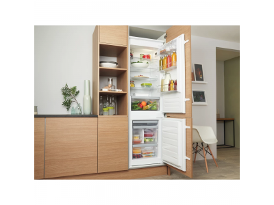 Kenmerken van deze Bauknecht integreerbare koel-vriescombinatie: diepvriesgedeelte onderaan. Het StopFrost systeem zorgt ervoor dat u moeiteloos kunt ontdooien. U hoeft alleen maar het uitneembaar rooster 1 minuut onder de kraan af te spoelen. Robuuste en elegante glazen legplateaus. Handig flessenrek om uw flessen veilig te bewaren. Kleur wit.