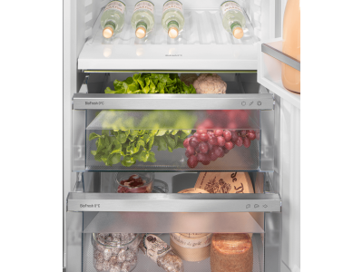 Deze koel/vriescombinatie met volledig vlakke deuren en geïntegreerde grepen biedt net dat beetje extra. Het deelbare draagplateau en het geïntegreerde flessenplateau bieden extra flexibiliteit. In de 2 BioFresh laden op telescooprails bewaart u groenten en fruit tot 3x langer dan in een normale groentelade. Het FreshAir filter zorgt voor een fris interieur en het NoFrost vriesdeel hoeft u nooit te ontdooien. Maak in een handomdraai 60 ijsblokjes met de EasyTwist-Ice. Geschikt voor smarthome toepassingen.