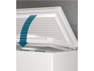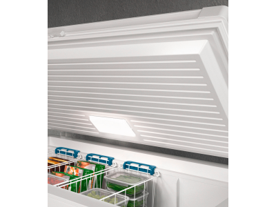 Deze zuinige diepvrieskist met verlichting en SoftSystem dekselsluiting kan in een onverwarmde schuur of garage worden geplaatst en dankzij het balansdeksel valt het deksel nooit uit zichzelf dicht. Het StopFrost systeem vermindert ijsvorming op de verpakkingen en zorgt dat het deksel moeiteloos kan worden geopend. Loopt de temperatuur vanwege een (stroom)storing op, dan wordt u gewaarschuwd door het akoestische temperatuuralarm. Na een stroomstoring wordt ook de hoogste behaalde temperatuur getoond zodat u de kwaliteit van uw producten kunt beoordelen.