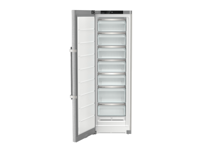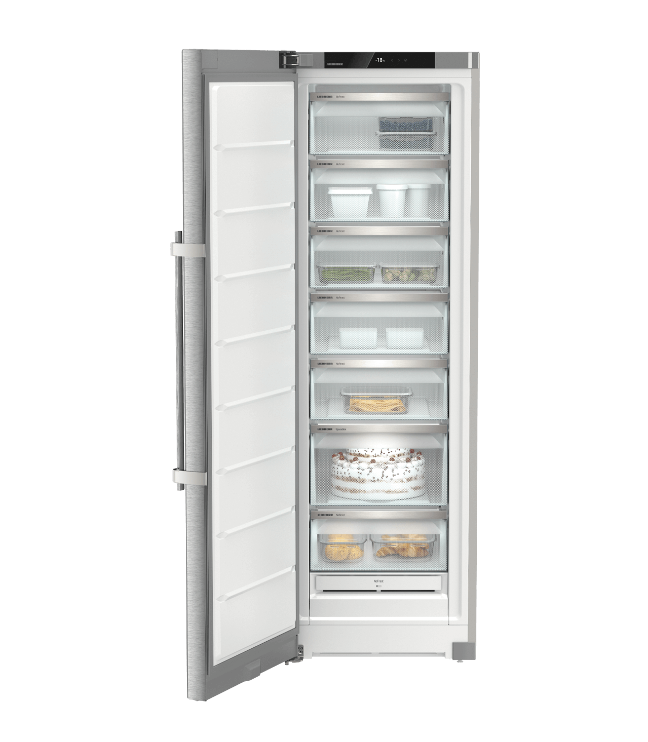 Deze roestvrijstalen NoFrost vrieskast hoeft u nooit te ontdooien en dankzij EasyOpen is de deur moeiteloos achter elkaar te openen en te sluiten. De SpaceBox biedt plaats aan extra grote verpakkingen en het invriesplateau is perfect voor het invriezen van vruchten en kruiden. Dankzij zijwandverwarming kan deze vriezer zonder kans op condensatieproblemen gecombineerd worden in een Side-By-Side opstelling. Geschikt voor smarthome toepassingen met optionele SmartDeviceBox.