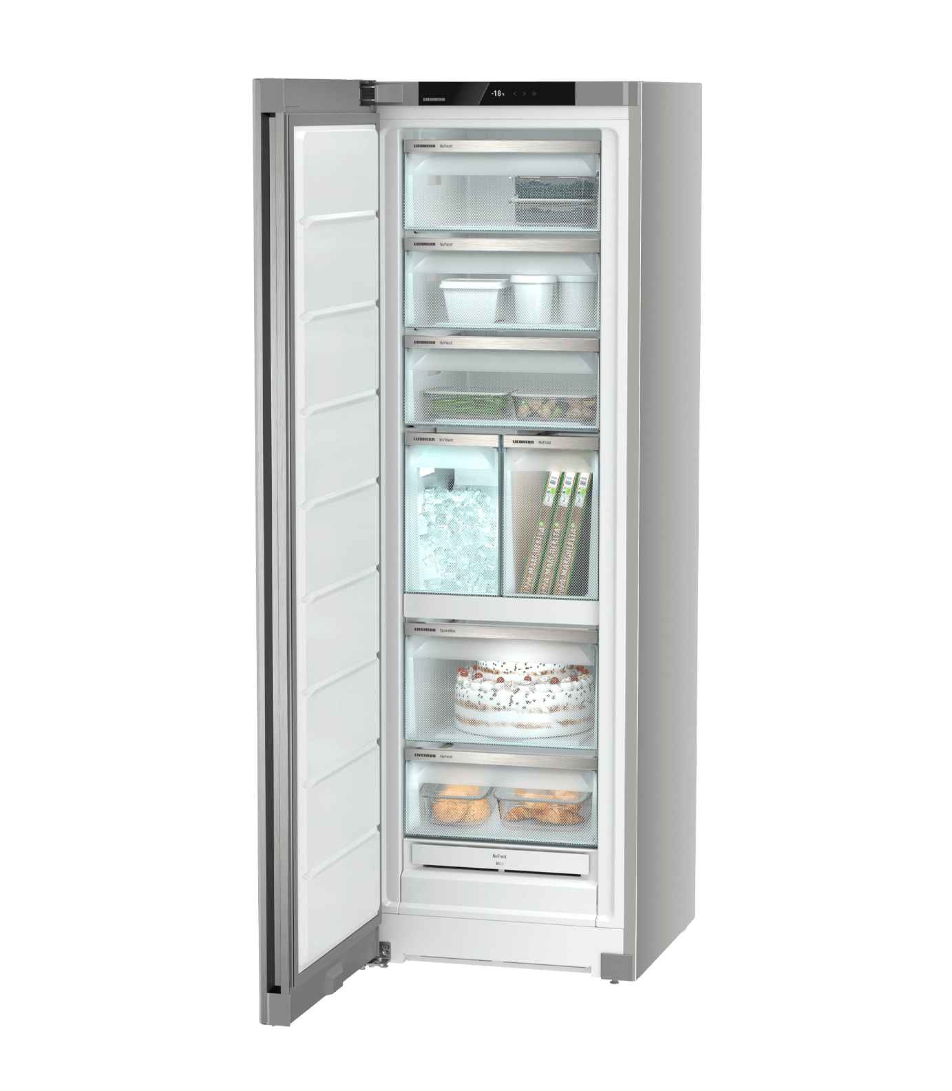 Deze NoFrost vrieskast hoeft u nooit te ontdooien en dankzij EasyOpen is de deur moeiteloos achter elkaar te openen en te sluiten. De SpaceBox biedt plaats aan extra grote verpakkingen en het invriesplateau is perfect voor het invriezen van vruchten en kruiden. Altijd ijsblokjes dankzij de IceMaker met vaste wateraansluiting. Dankzij zijwandverwarming kan deze vriezer zonder kans op condensatieproblemen gecombineerd worden in een Side-By-Side opstelling. Geschikt voor smarthome toepassingen met optionele SmartDeviceBox.