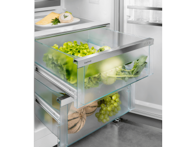 De BioFresh laden hebben een comfortabele zelfsluiting met zachte demping, de lade trekt zichzelf laatste 3 cm zachtjes dicht. De laden zijn bij 90° deuropening volledig uittrekbaar en uit te nemen.