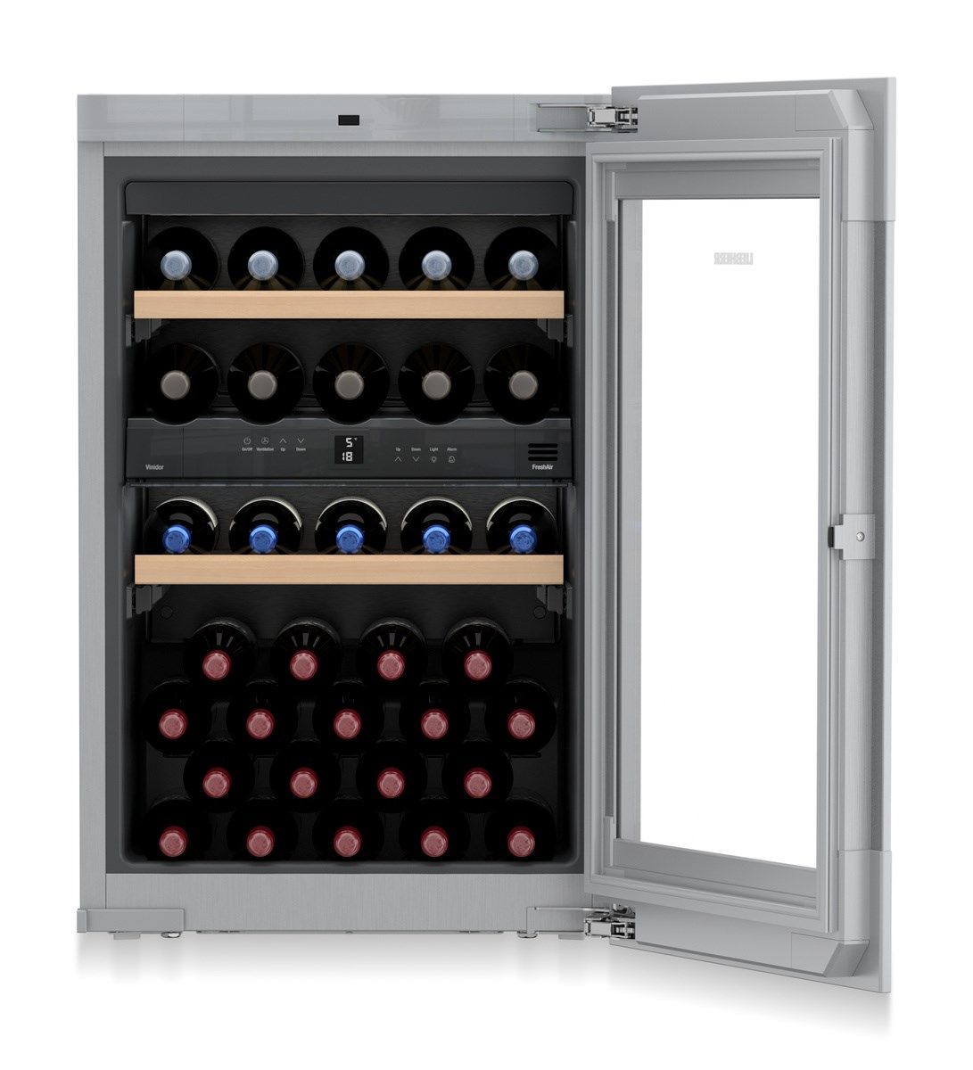 Omgevingsgeuren kunnen invloed hebben op wijnen die langere tijd worden bewaard. In de wijnkoelkast wordt een perfecte luchtkwaliteit verzekerd door een eenvoudig vervangbaar FreshAir-actief koolfilter.