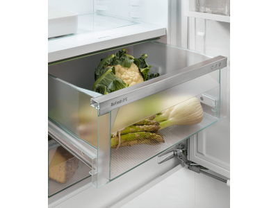 Kenmerkend voor de Liebherr binnenkuip zijn de aan beide zijden geïntegreerde steunen aan voor- en achterkant. Deze garanderen een grote flexibiliteit bij het verstellen van de glasplateaus. U kunt de glasplateaus om de 4 cm plaatsen. Een ander voordeel is het zeer gladde interieur dat schoonmaken vereenvoudigt.