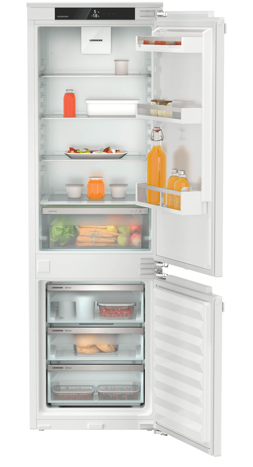 Deze inbouw koel/vriescombinatie uit de Pure-serie voorziet in alle essentiële behoeften. In de EasyFresh lade bewaart u groenten en fruit bij de ideale luchtvochtigheid. Het ruime koeldeel biedt plaats aan een volledige bakplaat en wordt dankzij de LED plafondverlichting goed verlicht. Het FreshAir filter zorgt voor een fris interieur en het NoFrost vriesdeel hoeft nooit te worden ontdooid en biedt ook plaats aan grote verpakkingen. Geschikt voor smarthome toepassingen dankzij optionele SmartDeviceBox.