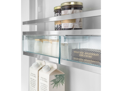 De luxe deurvakken met glazen bodem zijn op meerdere posities in de deur te plaatsen. De edelstalen afwerking van de deurvakken geeft een luxueuze uitstraling aan het interieur. De deurvakken zijn groot genoeg voor 2 liter verpakkingen. De deurvakken met veiligheidsglas zijn geschikt voor de vaatwasser.